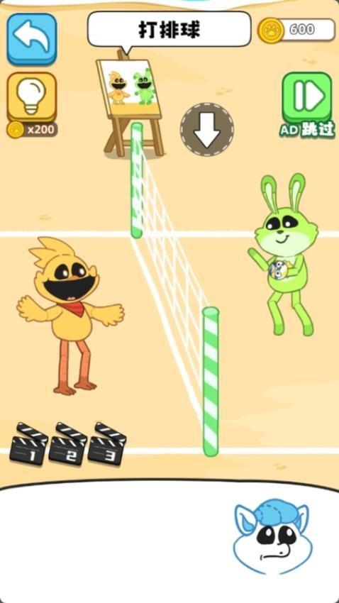 1、提供打排球玩法,拖动底部的角色到白色箭头位置就可以开始打排球。