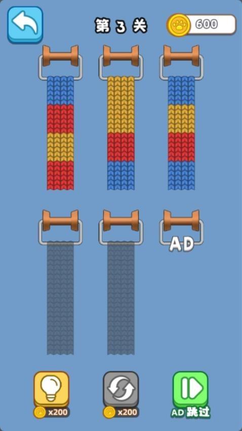4、支持刷新功能,使用200金币就可以让画面的毛线位置刷新一次,让你可以更好对毛线分类。