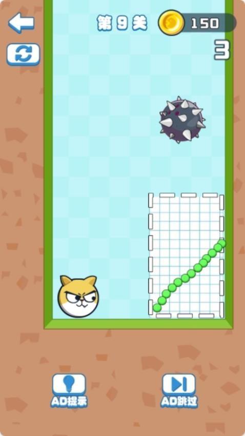 1、提供“保护一下”游戏玩法,提供简单的画线保护玩法,你需要画线保护狗头不被攻击。