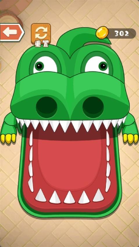 直接在游戏显示一个鳄鱼嘴巴,嘴巴有很多牙齿,可以和自己的朋友每人按压一次牙齿,看鳄鱼会咬住谁