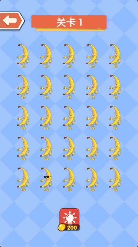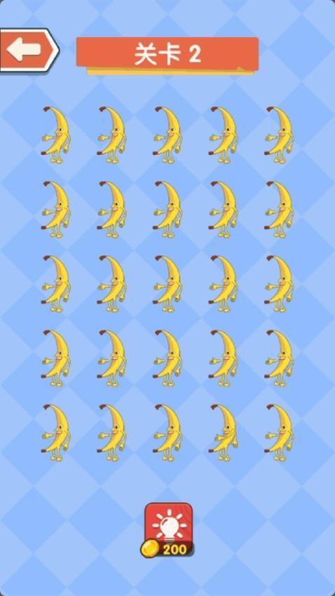 3、支持大香蕉找茬玩法,在游戏界面体验找茬的乐趣,将一只不同的香蕉找到就可以通关关卡