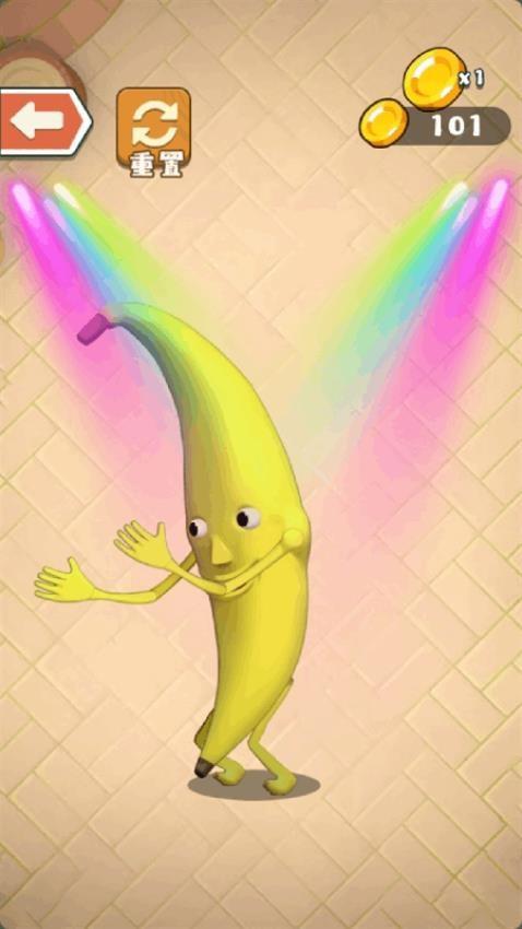 画面显示一个香蕉怪物,您可以点击香蕉人开始跳舞,并且会显示舞台灯光效果,让跳舞过程更美观