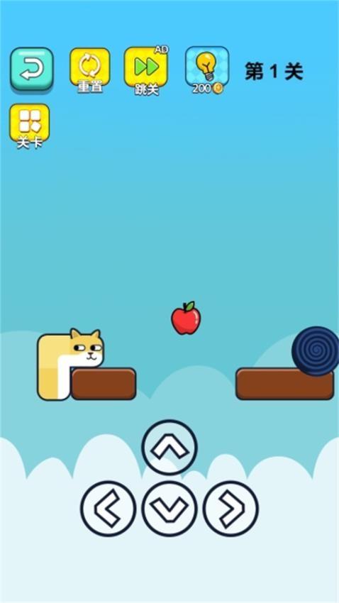 直接在游戏界面控制一直狗移动,吃掉关卡的苹果就可以完成挑战,闯关还是非常简单。