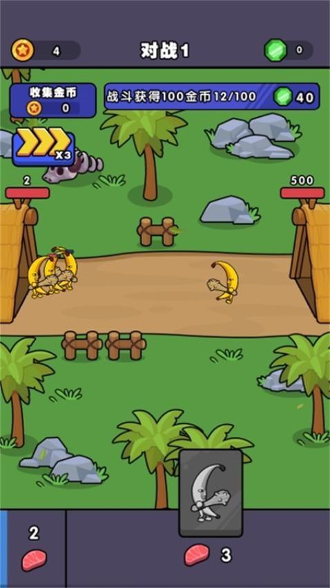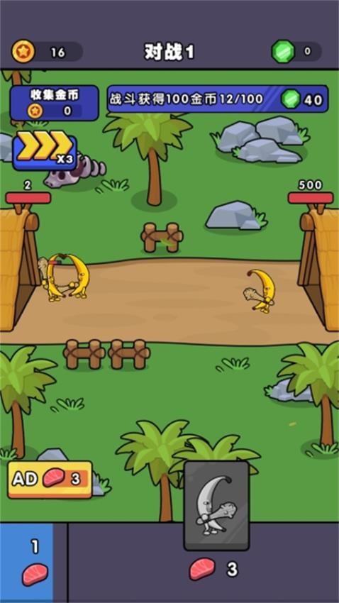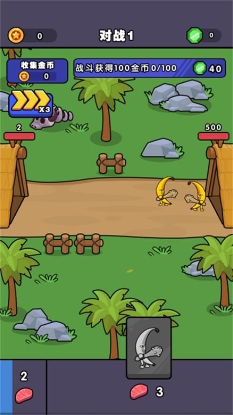 官方提供不同的香蕉人士兵,玩家可以添加三种士兵一起战斗,可以和敌人相互攻击。