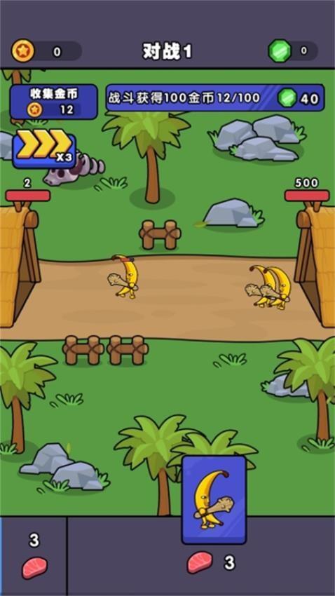 3、有三个食物就点击底部的士兵,直接在游戏界面自动显示一个香蕉人参加战斗。
