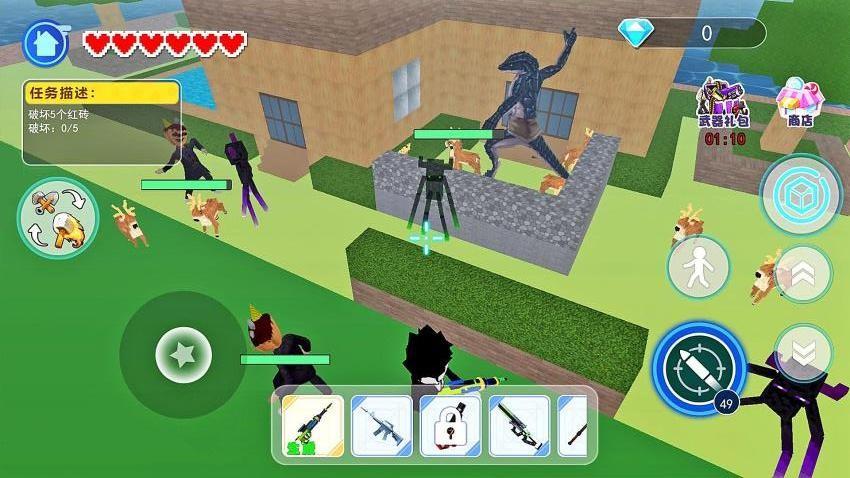 充分发挥想象力与创意,实现全方位的建造发展,以此形成极其独特的房屋设施和武器工具,趣味十足。
