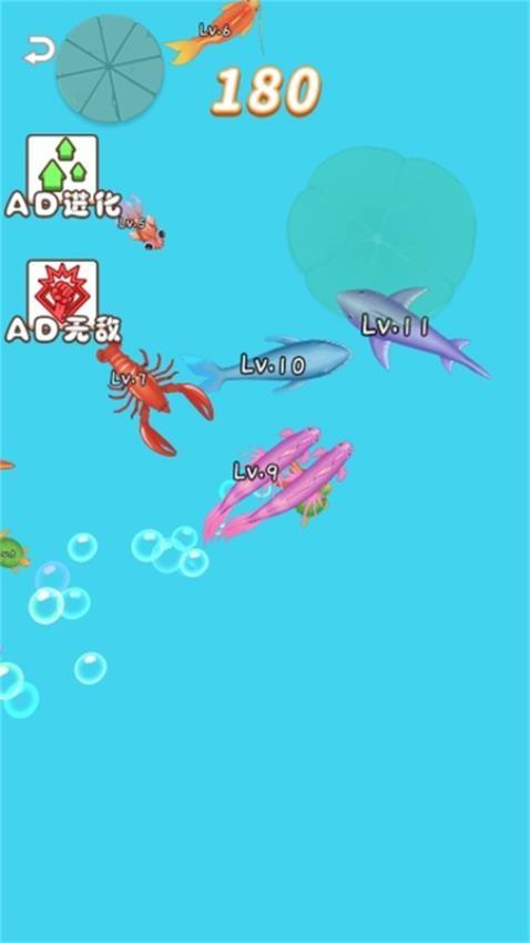 提供简单的神龙合成玩法,在游戏界面吞噬和自己同级的动物就可以进化为海底生物,一直吞噬一直进化。