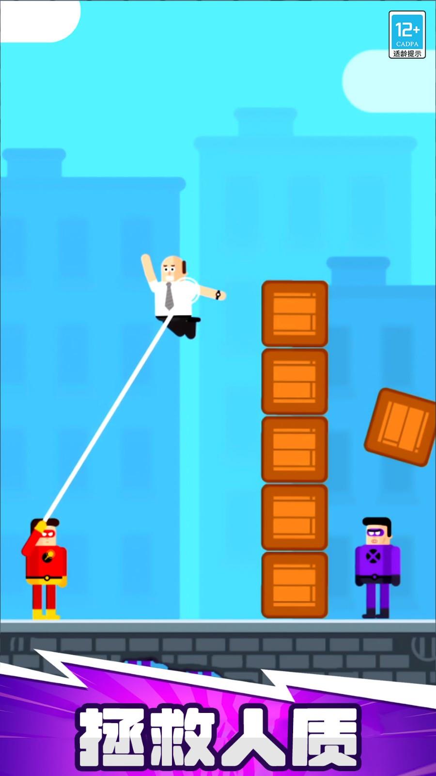 2、左边是人质,右边是能够隔绝你超能力的劫匪,你需要合理利用图中的物体来消灭敌人。