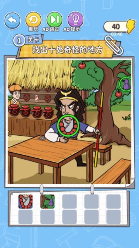 3、如图所示,你需要找到10处奇怪的地方,手指点击画面就可以将奇怪的地方添加到底部