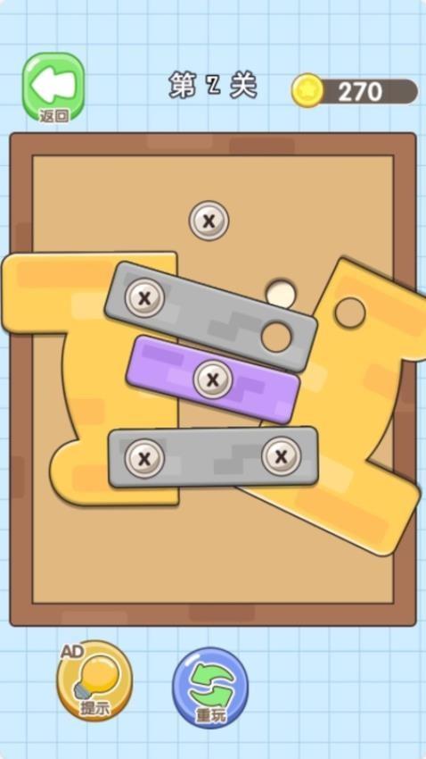 4、只画一条线手游提供丰富的玩法,可以在游戏体验拔出螺丝的玩法,消除画面的螺丝。