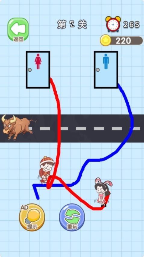 4、支持重玩功能,如果你挑战失败,可以在游戏点击重玩,尝试不同的画线方式直到成功为止