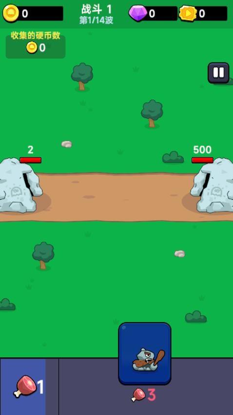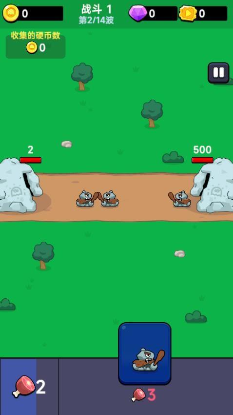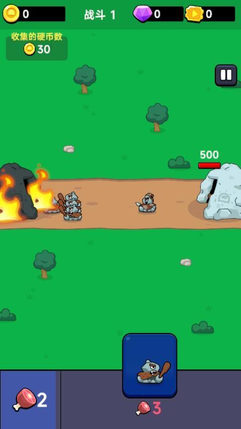 1、进入游戏后,依托自动生产的食物资源,当数量累积到3时,即可召唤士兵,组建基础作战部队。