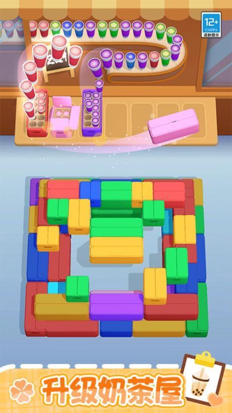 游戏的玩法简单而有趣,进入游戏,你就是奶茶店的主理人,店里堆满了各种颜色的奶茶打包盒,你的任务就是根据奶茶的颜色,把这些杂乱堆叠的打包盒按照顺序进行点击打包,没有复杂的操作,没有烧脑的剧情,一切都是那么轻松自在!