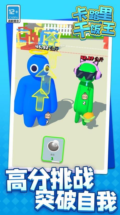《卡路里干饭王》是一款非常好玩的休闲游戏,在游戏里玩家面对一些奇怪的事件发生时,要通过不断地吞噬来让自己更高大更强壮,让自己成为最强壮的那个人!