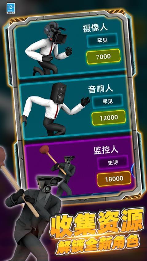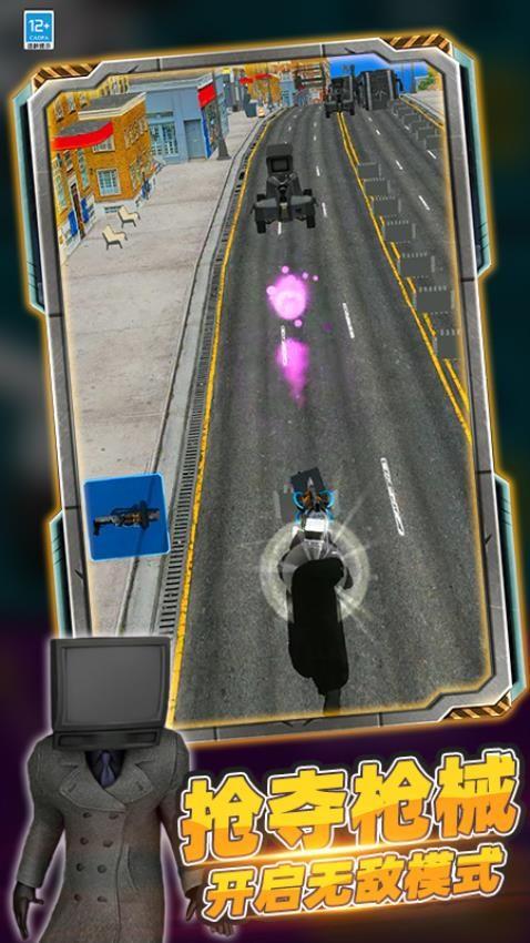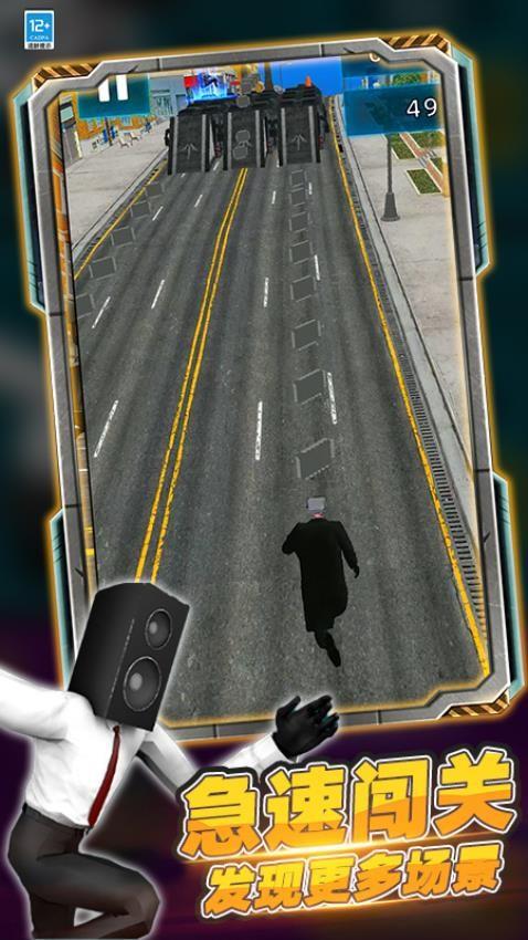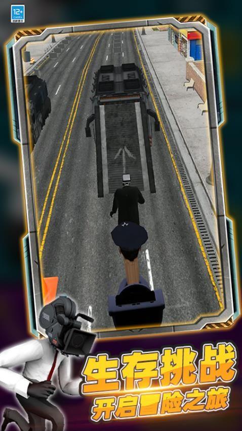 玩家操控头戴监控设备的角色,在道路上展开极速闯关。你需要灵活操控角色跳跃下滑,躲避各种障碍,如路障、车辆等。游戏设有生存挑战模式,开启冒险之旅。还能抢夺枪械,进入无敌模式。通过收集资源,解锁如摄像人、音响人等全新角色,体验不同角色带来的独特乐趣。