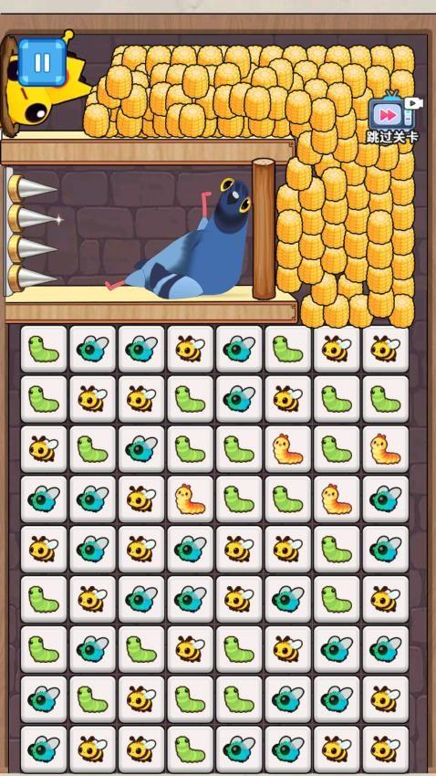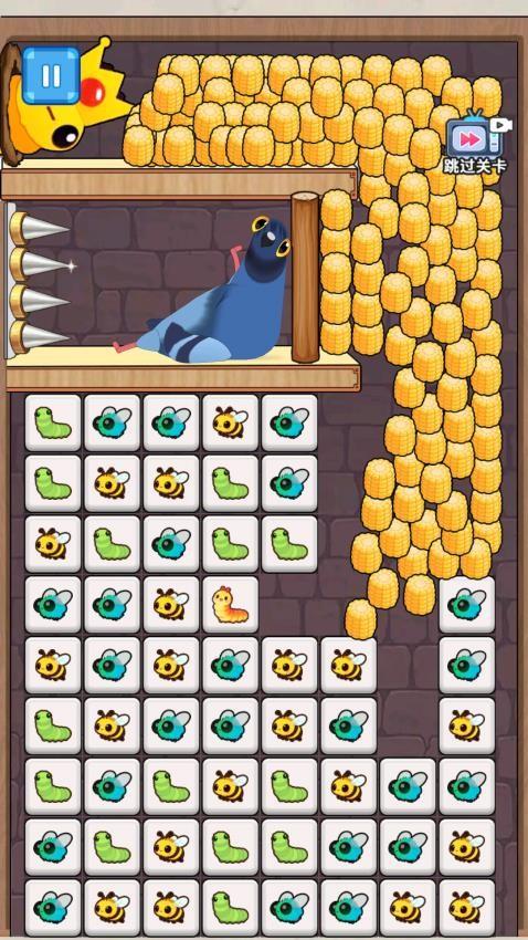 5、每分每秒都十分重要,玩家需在鸽子移动的过程中,尽快消除下方的虫子,才不会让它继续移动。
