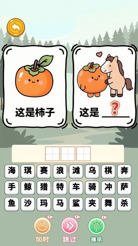 3、各种谐音汉字也会出现在游戏中,你需逐步找到与之相关的正确汉字,才能得到最好的挑战结局。