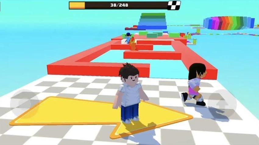 3、和不同的对手一起跑酷,极速地冲刺,甩开你的对手,成功到达终点。