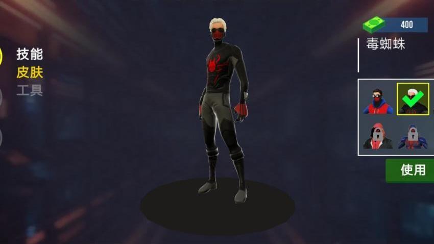 1、挑选你所喜欢的超人角色,比如毒蜘蛛,需要使用钞票来购买解锁。