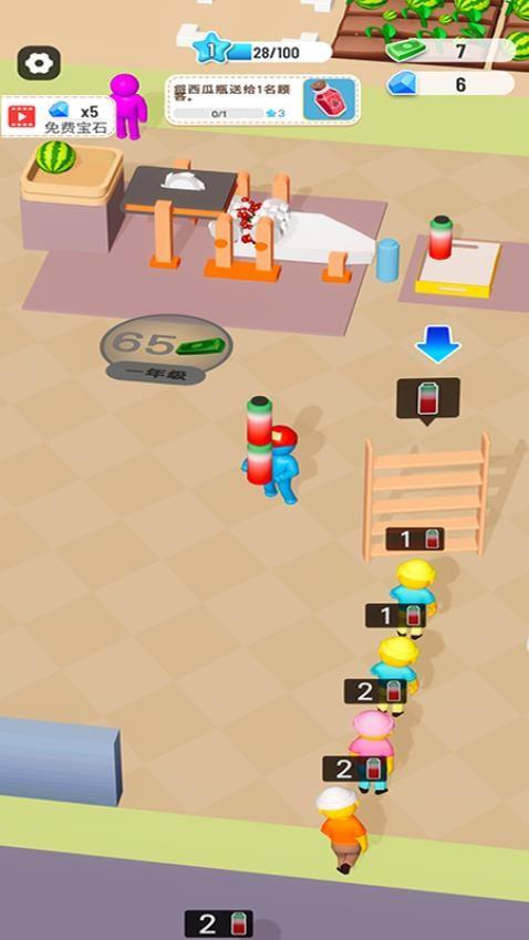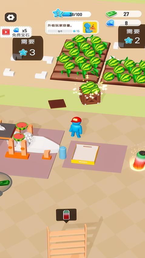 5、需要招募搬运工来搬运西瓜,他们需要时刻关注榨汁机的情况,并在适合的时候搬运并添加西瓜。