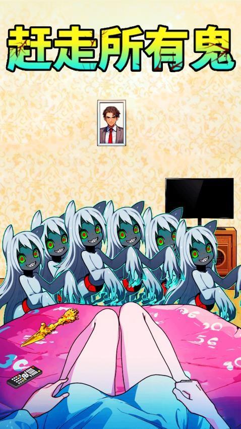 3、画面显示八个女鬼,你需要拖动画面的各种物品驱赶女鬼,例如拖动大碗、拖动大蒜、拖动墙上的相框。