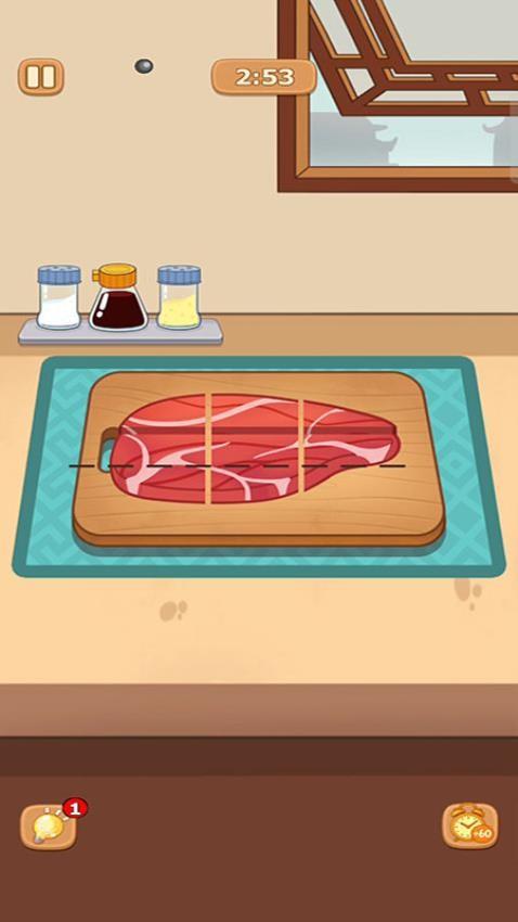 4、切菜时会触发食材的碎屑飞溅效果,煎肉时也会出现油脂滋滋作响的特效,带来相当逼真的视觉效果。