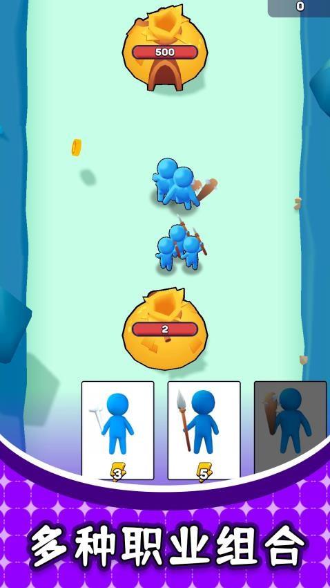 战斗小队收集扩张,行动过程中收集各式各样的火柴人组成小队,随着人数增加可以大大提高实力。