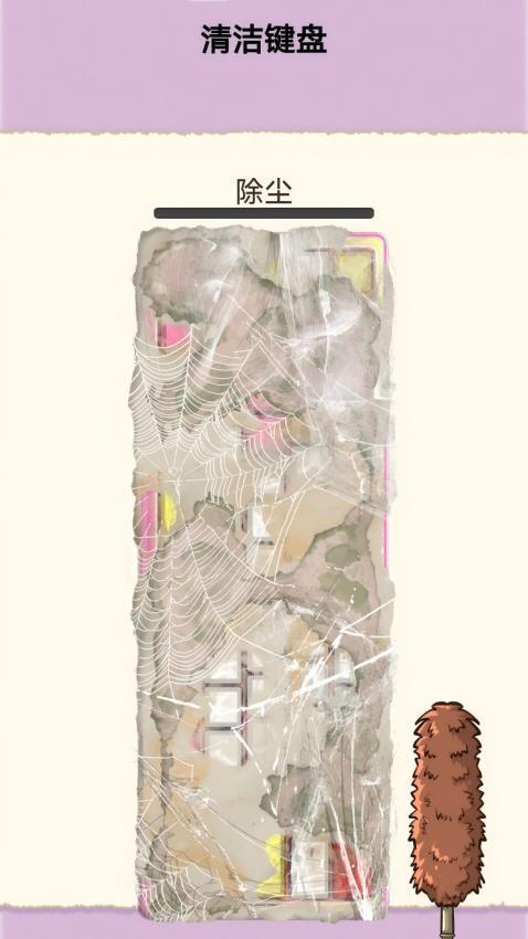 3、键盘上出现了许多的杂物,你需使用鸡毛掸子来清理这些物品,获得清洁成功结果。