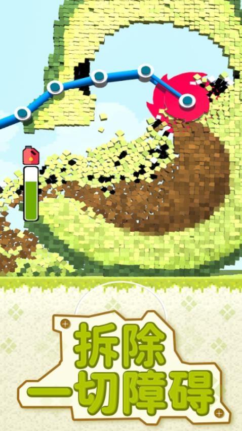 1、掘地求升手游正版操作简单,可以直接在游戏界面快速拖动切割设备攻击墙体。
