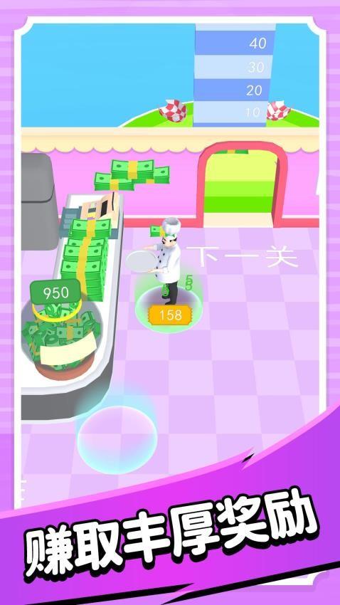 5、到达终点之后你可将这些美食全都售卖出去,得到许多的钞票奖励,还可获得顾客的好评。