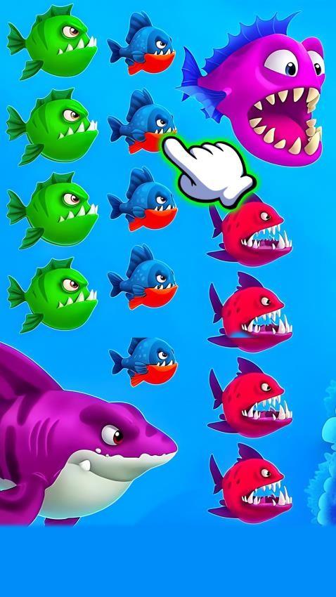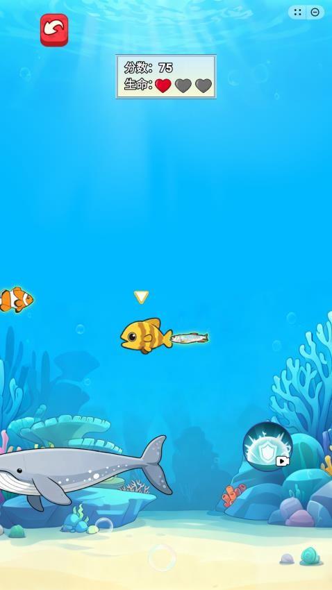 《鱼吃鱼吞噬》是一款海底吞噬成长游戏:你操控小鱼在缤纷海底游动,通过吞噬其他小鱼积累分数,同时要躲避鲸鱼等大型生物的威胁,还能使用护盾道具规避危险,体验“从小鱼逐步成长、躲避天敌”的轻松趣味~