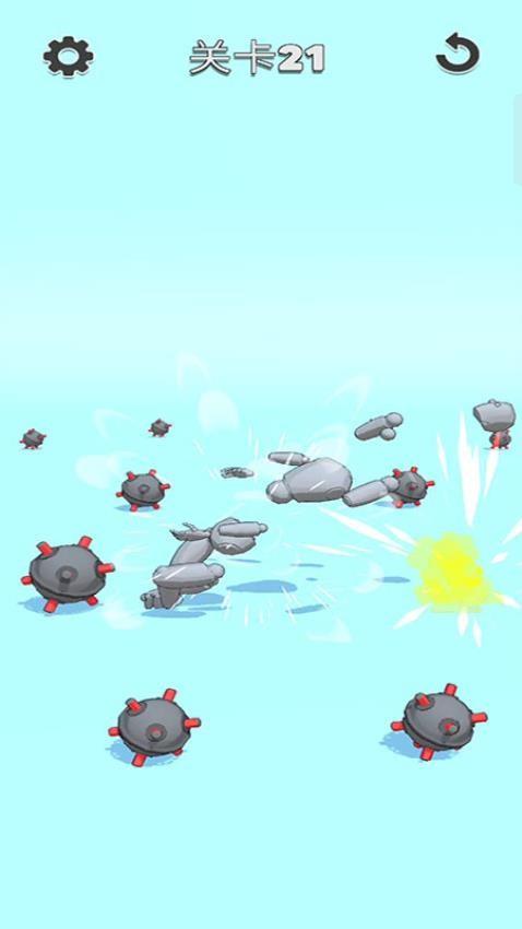 2、点击地雷,进行引爆,将木偶人全部粉碎,过关,继续开始第二关;
