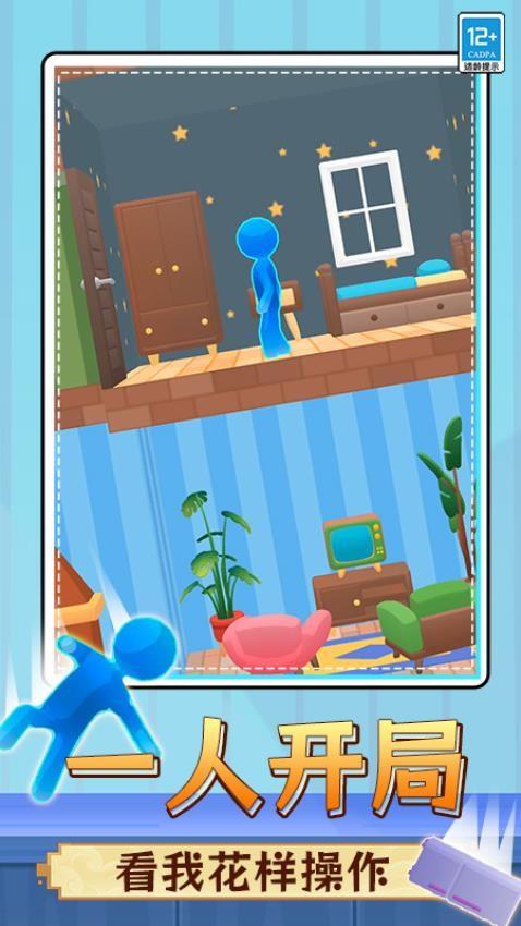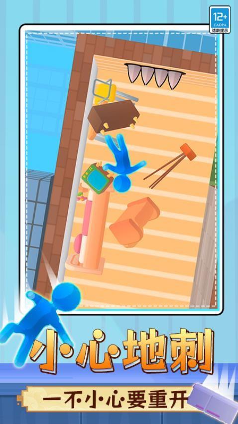 这是一款充满趣味与挑战的火柴人风格闯关游戏。玩家操控蓝色火柴人在各种精心设计的场景中冒险,需小心躲避地刺等危险障碍,利用灵活走位打破前方阻挡,在室内失重等奇妙环境中保持平衡。