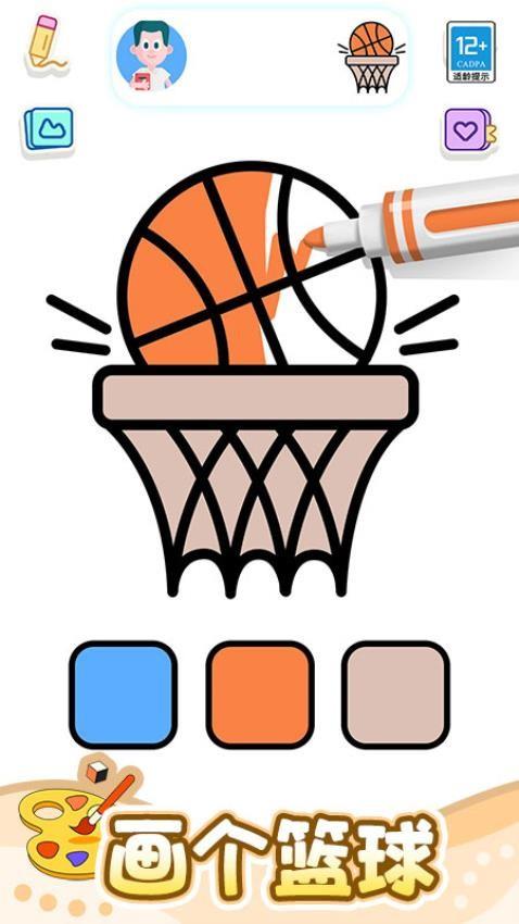 1、挑选橙色这个颜色来涂鸦,即可得到更完整的篮球效果,你也会得到关卡的胜利。