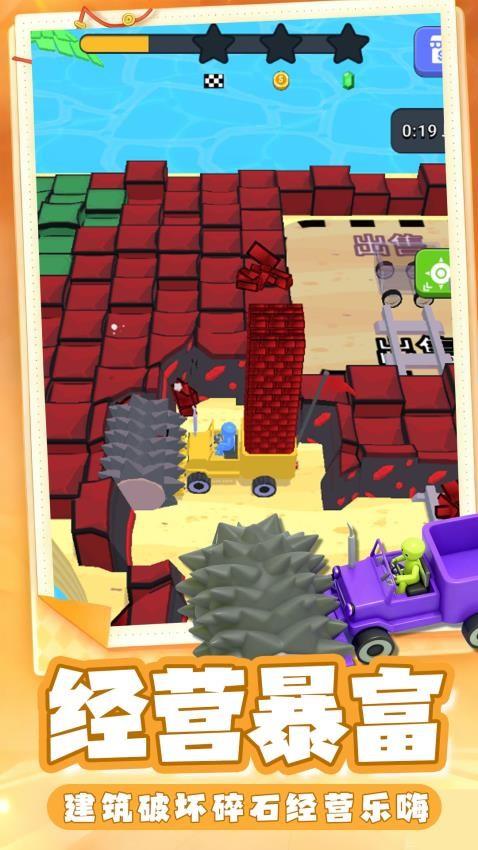 驾驶拖车粉碎岩石,采集资源,返回基地出售资源,然后升级托车,解锁更多精彩内容!每种工具都需要特定能量驱动,并有效率、精度、深度等属性。
