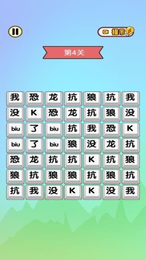 网络上的热梗“恐龙抗狼”台词可以通过这款游戏连接,可以一句一句的将汉字连接为正确的台词。