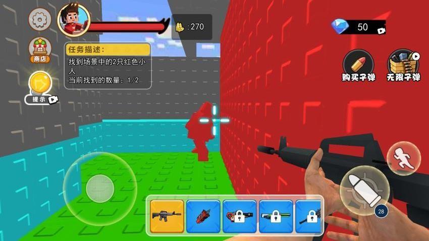 在游戏中,你需要根据提示,找到对应场景下藏着的小人并使用武器将其击败,考验你眼力的时候到了,看看你能通到第几关?