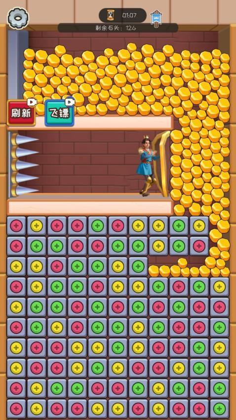 3、关卡目标十分明确,只需要减少石块数量就能完成挑战,查看石块的滚动效果合理布置后续操作就能通关。