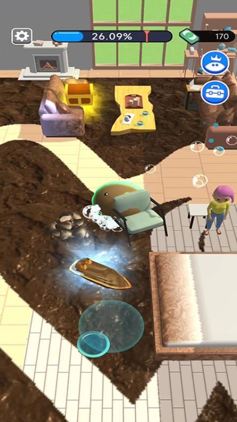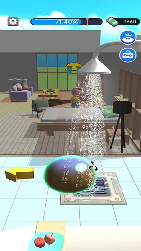 1、史莱姆大清洗手游玩法简单,可以体验打扫房间的乐趣,随时启动游戏开启新的打扫玩法。