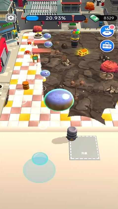 1、支持户外打扫,你可以控制史莱姆在城市户外打扫,找到污渍区域就可以开始移动。