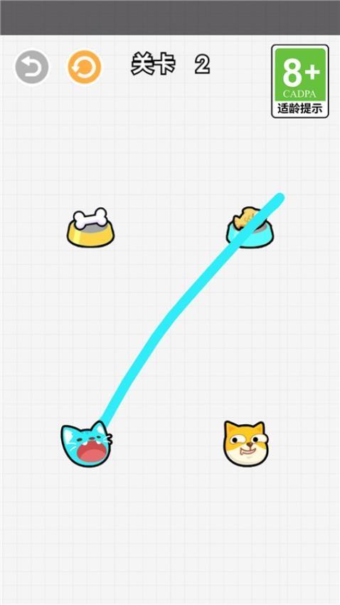 5、你想上天吗手游也提供画线玩法,将狗子连接到骨头,将喵咪连接到小鱼。