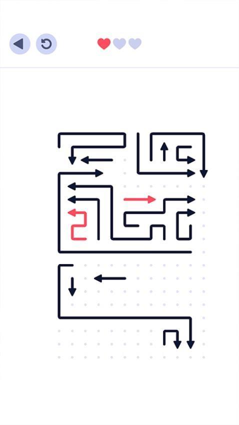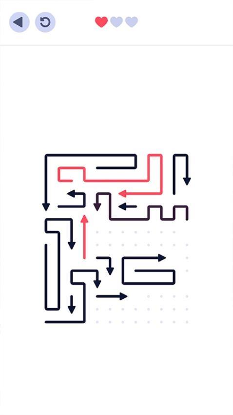 1、方向箭头为核心元素打造,随着关卡推进会出现越来越多的箭头和线段,集中精力进行操作才能完成最终挑战。