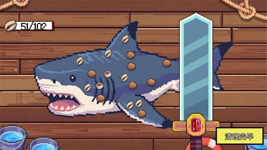 大鱼无法使用小刀处理鱼鳞,您需要升级自己的刀具,这样才能在游戏中去除大鱼的鱼鳞。