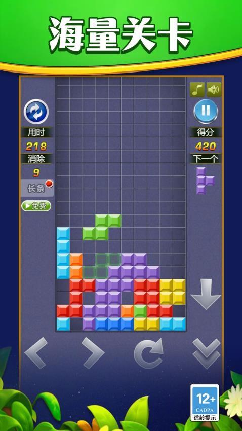 经典俄罗斯方块强势升级,一场关乎精准与策略的叠叠巅峰对决正式开启!你将在复古与创新交织的游戏界面中,操控各式方块下落、旋转、拼接,用完美叠放冲击高分巅峰,重温经典玩法的全新快感。