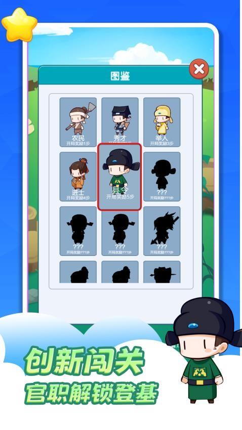 官职晋升逐步推进,从最低级的职位通过闯关慢慢提高地位。