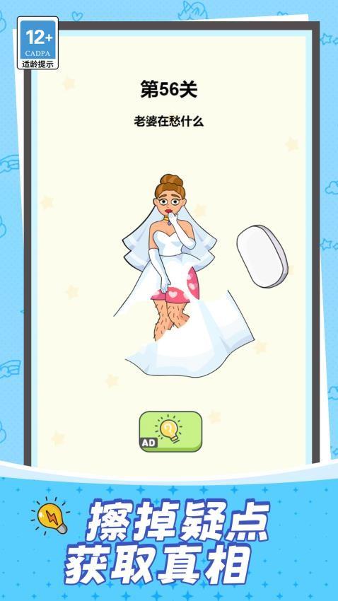 机智擦亮点游戏手机版是一款将日常文具化为神秘冒险工具的休闲解压游戏。游戏的核心的玩法在于操控一块独特的橡皮擦寻找线索完成关卡挑战,在层层覆盖的灰暗线条下隐藏着线索信息与特殊解谜路径,利用橡皮擦选择性擦掉不同位置就能扫除迷雾获取全部信息,收集所有关键线索就能进行推理解谜,成功找出正确答案即可完成关卡挑战,并且可以带来解压畅快的体验。精准擦拭动作解开所有谜题,每次擦拭都要根据基本信息指引选择不同位置,这样即可最终完成挑战获取丰富奖励,感兴趣的小伙伴快来下载试试吧。