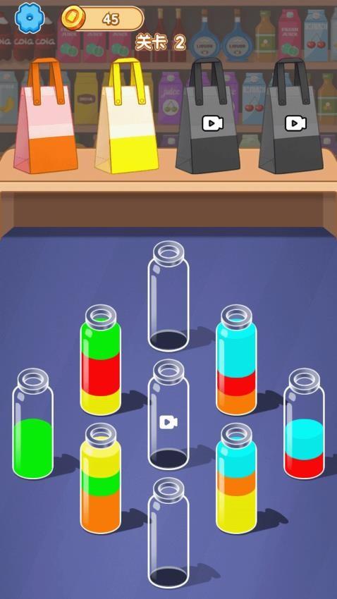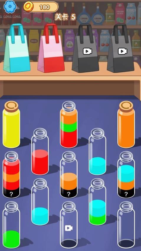 在色彩与容器的碰撞中,解锁解压的排序治愈时刻!这款装满你的玻璃瓶游戏规则非常简单:将瓶中不同颜色的液体通过倒来倒去的方式排序统一,让所有瓶子中液体的颜色统一,就能成功通关。