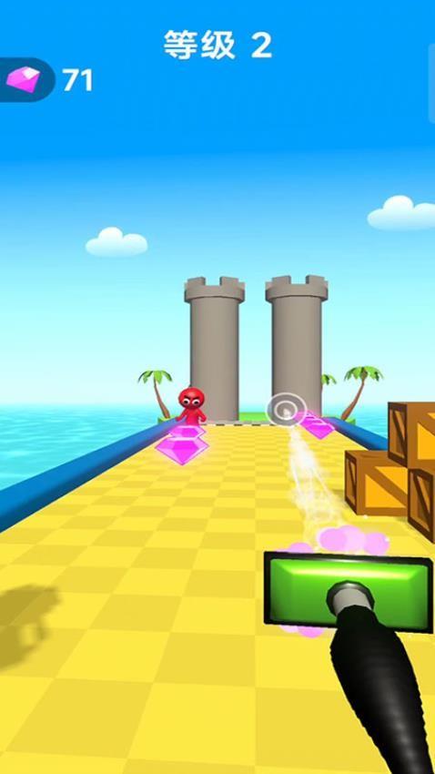 1、长按屏幕蓄力激活吸尘器漩涡,可以攻击前方红色的小人,但是要避开障碍物。