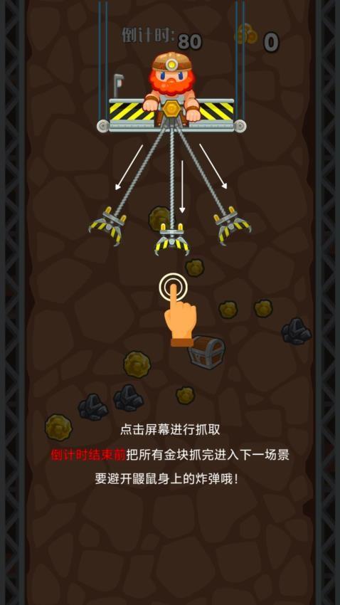 玩家将化身为小矿工,通过点击屏幕操控矿工进行挖矿作业。矿洞中,大小不一的黄金等待着被发掘,越大的黄金价值越高。不过,在挖掘过程中要格外小心,千万不能挖到背着炸弹的鼹鼠,否则游戏就会结束。游戏画面简洁明快,玩法轻松易上手,能让玩家体验到刺激又欢乐的挖矿乐趣。