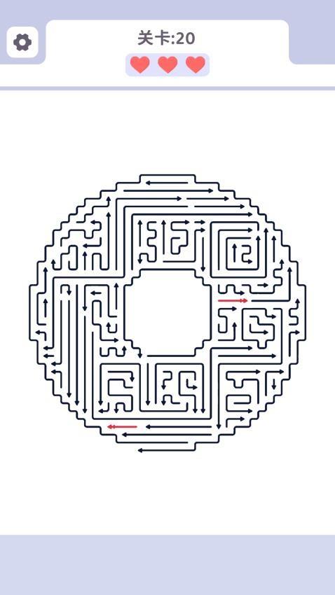 2、需遵循 “点击箭头移动” 规则:先定位迷宫中的箭头,点击后箭头会沿自身朝向移动,优先选择路径通畅的箭头,逐步清理迷宫中的箭头元素。